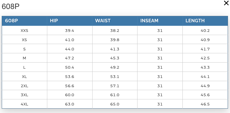 Inseam 31" 31" 31" 31" 31" 31" 31"